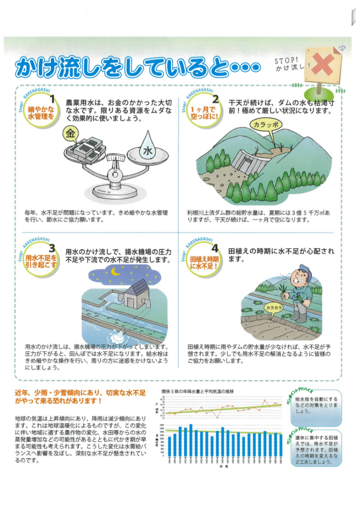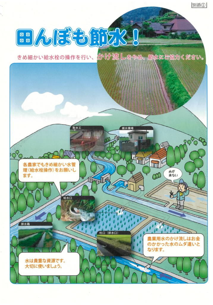田んぼの節水に心掛ける様、お願い致します。